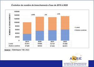 De 125 017 abonnés en 2021, la TdE a vu son portefeuille clients croitre en 2022 de plus de 5 879 nouveaux clients. En effet, la société a dénombré en fin d’année 202, 135 299 branchements dont 131 414 branchements privés, 2259 branchements publics et 1 626 bornes fontaines.